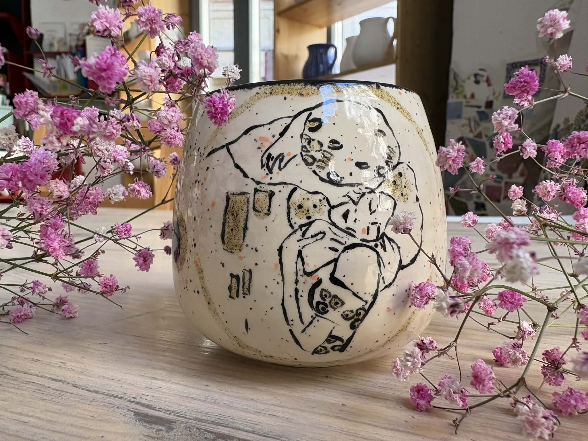 A workshop alatt segítünk ötletekkel, inspirációval és technikai tanácsokkal. A megfestett kerámiát mi kemencében kiégetjük és egy hét múlva tudod átvenni, amikor már végleges formájában ragyog.